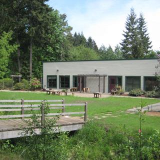 The design draws on the presence of the forest and creates a transition from the built environment into the coastal Douglas forest that dominates the site. As a classroom for practical studies, the Garden Lounge provides opportunities for outdoor classroom activities and lectures, especially plant identification and practical garden maintenance.